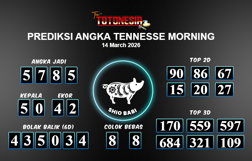 Prediksi TENNESSE MORNING adalah perhitungan nomor togel unggulan dari agen suhu togel yang menyajikan angka prediksi paling akurat, sehingga memberikan banyak keuntungan saat bermain di pasar togel TENNESSE MORNING . TotoNesia adalah prediksi dengan rasio kemenangan tertinggi di Indonesia. Sebagai penyedia togel yang dapat dipercaya, kami bertekad untuk memberikan ramalan togel yang handal dengan hadiah terbesarnya. Maka dari itu, jangan sampai terlewatkan prediksi bandar togel dengan hadiah terbanyak bet 100 dari pasar togel terbaik TENNESSE MORNING Daftar sekarang juga di bandar.