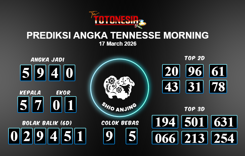Prediksi TENNESSE MORNING adalah perhitungan nomor togel unggulan dari agen suhu togel yang menyajikan angka prediksi paling akurat, sehingga memberikan banyak keuntungan saat bermain di pasar togel TENNESSE MORNING . TotoNesia adalah prediksi dengan rasio kemenangan tertinggi di Indonesia. Sebagai penyedia togel yang dapat dipercaya, kami bertekad untuk memberikan ramalan togel yang handal dengan hadiah terbesarnya. Maka dari itu, jangan sampai terlewatkan prediksi bandar togel dengan hadiah terbanyak bet 100 dari pasar togel terbaik TENNESSE MORNING Daftar sekarang juga di bandar.