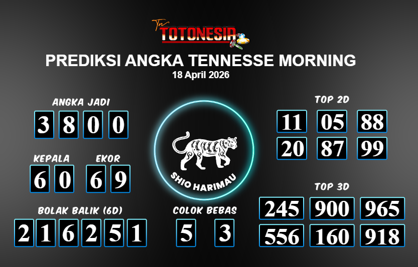 Toto Nesia : Bocoran Prediksi Togel TENNESSE MORNING Tanggal 18 APRIL 2026
