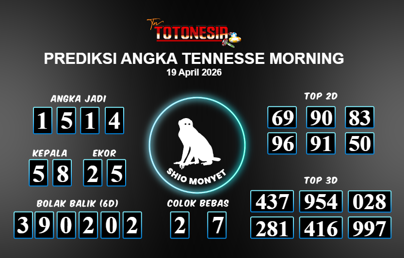 Prediksi TENNESSE MORNING adalah perhitungan nomor togel unggulan dari agen suhu togel yang menyajikan angka prediksi paling akurat, sehingga memberikan banyak keuntungan saat bermain di pasar togel TENNESSE MORNING . TotoNesia adalah prediksi dengan rasio kemenangan tertinggi di Indonesia. Sebagai penyedia togel yang dapat dipercaya, kami bertekad untuk memberikan ramalan togel yang handal dengan hadiah terbesarnya. Maka dari itu, jangan sampai terlewatkan prediksi bandar togel dengan hadiah terbanyak bet 100 dari pasar togel terbaik TENNESSE MORNING Daftar sekarang juga di bandar.