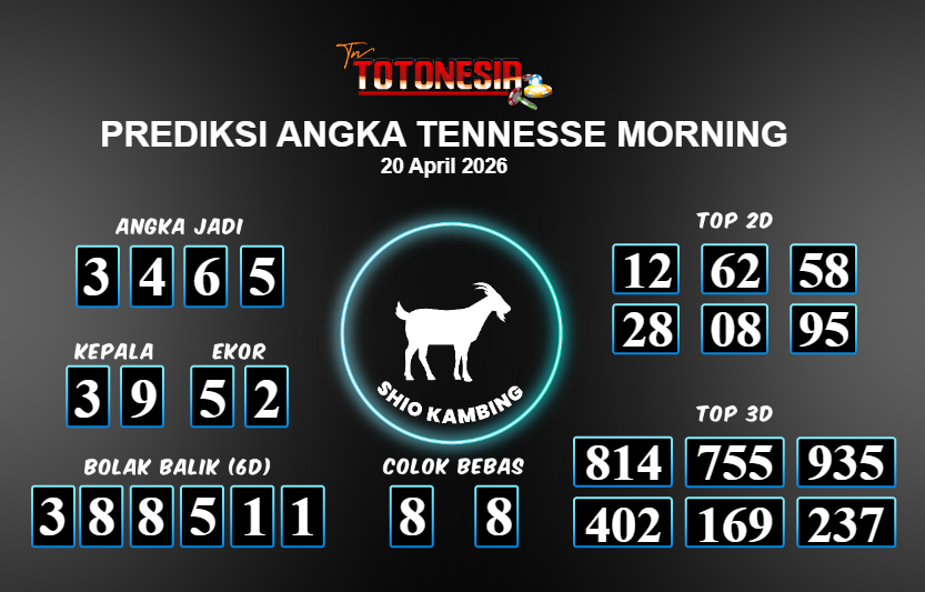 Toto Nesia : Bocoran Prediksi Togel TENNESSE MORNING Tanggal 20 APRIL 2026
