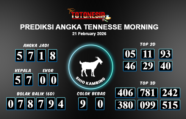 Toto Nesia : Bocoran Prediksi Togel TENNESSE MORNING Tanggal 21 FEBUARI 2026