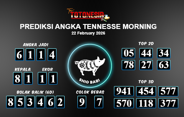 Toto Nesia : Bocoran Prediksi Togel TENNESSE MORNING Tanggal 22 FEBUARI 2026