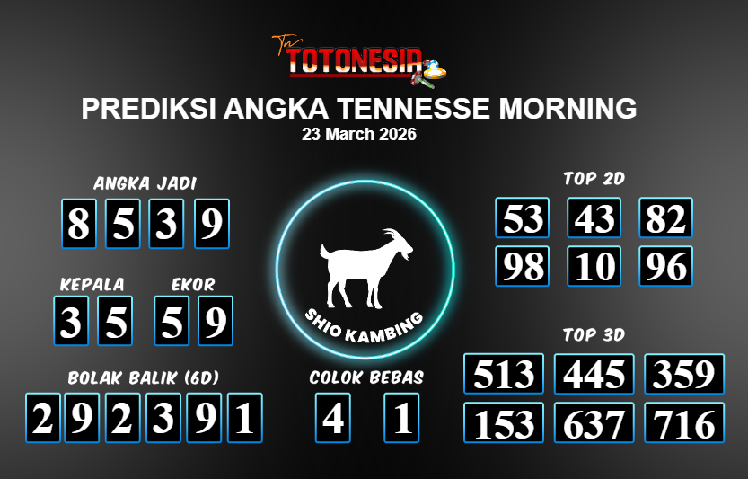 Toto Nesia : Bocoran Prediksi Togel TENNESSE MORNING Tanggal 23 MARET 2026