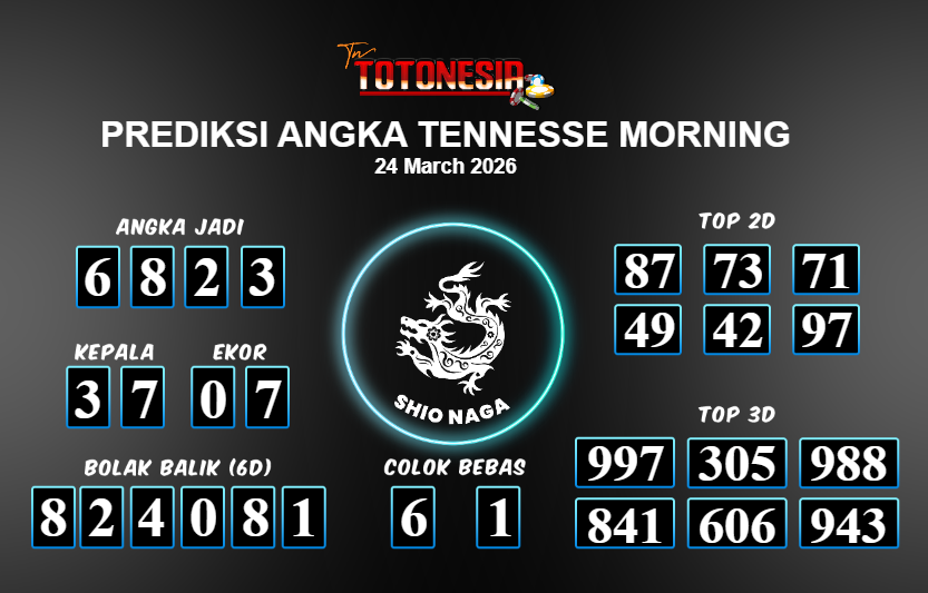 Toto Nesia : Bocoran Prediksi Togel TENNESSE MORNING Tanggal 24 MARET 2026
