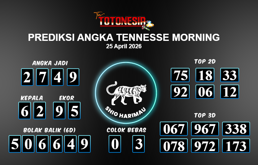Toto Nesia : Bocoran Prediksi Togel TENNESSE MORNING Tanggal 25 APRIL 2026