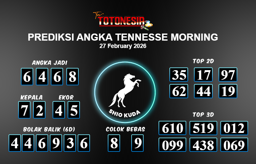 Prediksi TENNESSE MORNING adalah perhitungan nomor togel unggulan dari agen suhu togel yang menyajikan angka prediksi paling akurat, sehingga memberikan banyak keuntungan saat bermain di pasar togel TENNESSE MORNING . TotoNesia adalah prediksi dengan rasio kemenangan tertinggi di Indonesia. Sebagai penyedia togel yang dapat dipercaya, kami bertekad untuk memberikan ramalan togel yang handal dengan hadiah terbesarnya. Maka dari itu, jangan sampai terlewatkan prediksi bandar togel dengan hadiah terbanyak bet 100 dari pasar togel terbaik TENNESSE MORNING Daftar sekarang juga di bandar.