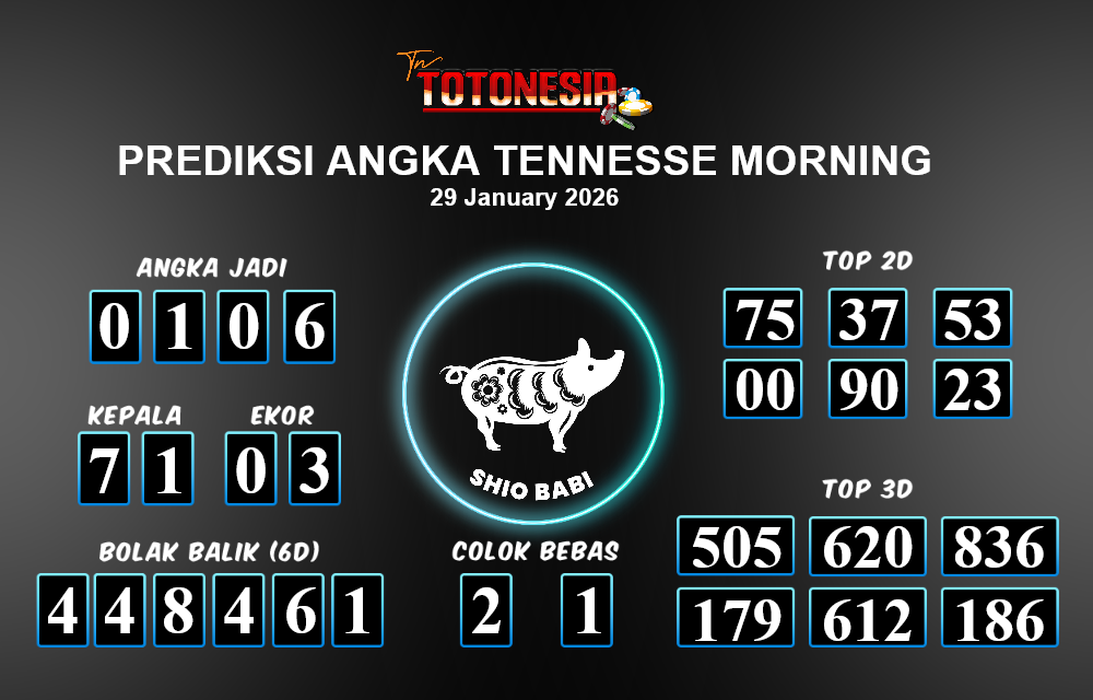 Toto Nesia : Bocoran Prediksi Togel TENNESSE MORNING Tanggal 29 JANUARI 2026