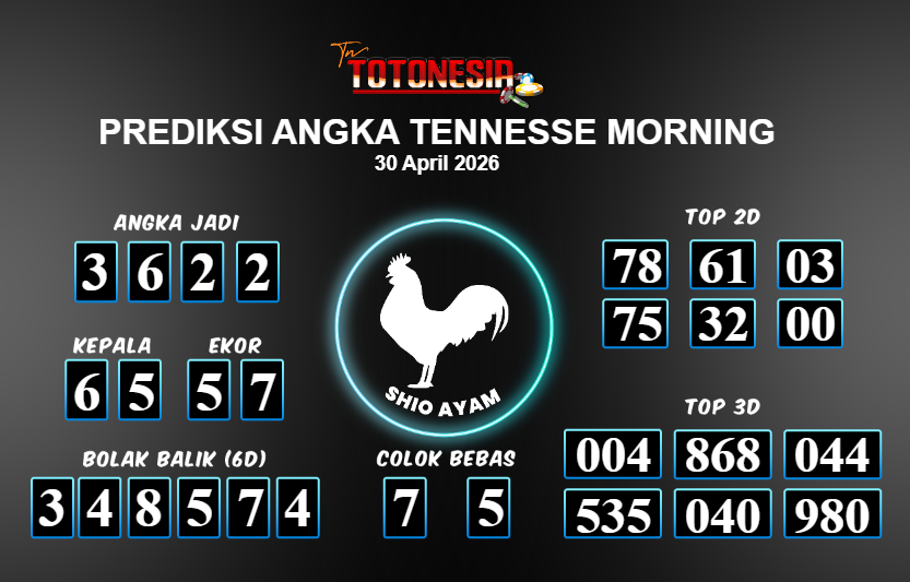 Toto Nesia : Bocoran Prediksi Togel TENNESSE MORNING Tanggal 30 APRIL 2026