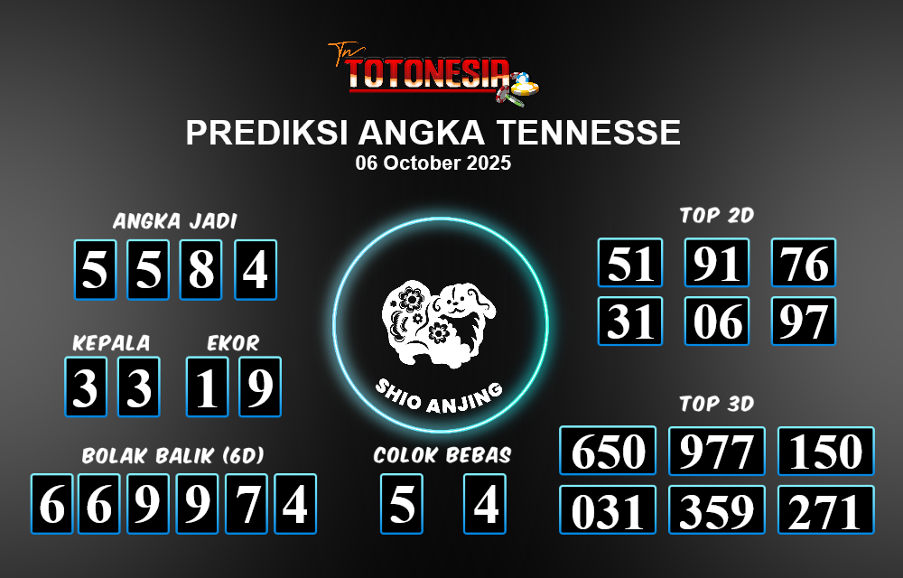 Toto Nesia : Bocoran Prediksi Togel TENNESSE Tanggal 06 OKTOBER 2025