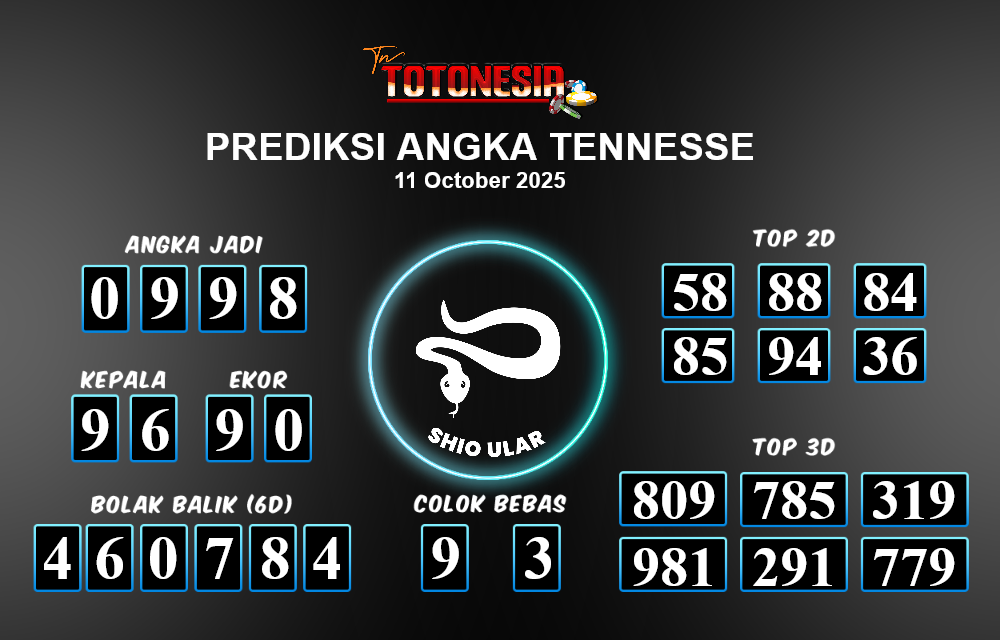 Toto Nesia : Bocoran Prediksi Togel TENNESSE Tanggal 11 OKTOBER 2025