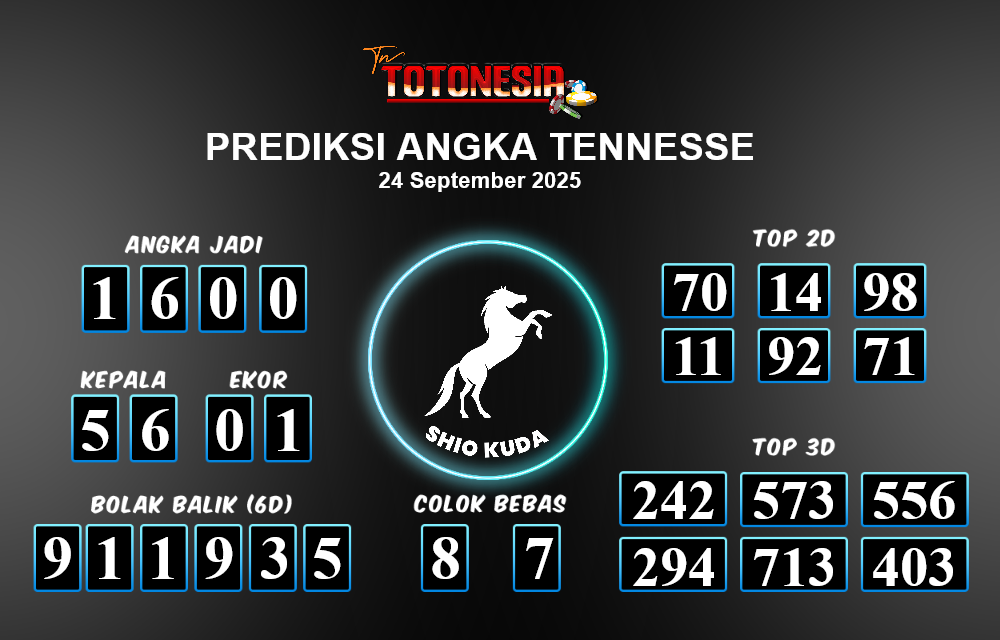 Toto Nesia : Bocoran Prediksi Togel TENNESSE Tanggal 24 SEPTEMBER 2025