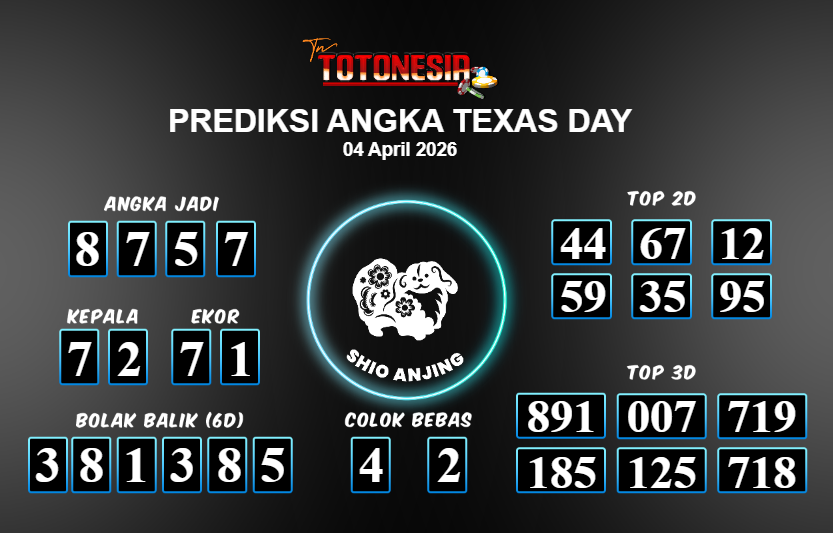 Toto Nesia : Bocoran Prediksi Togel TEXAS DAY Tanggal 04 APRIL 2026