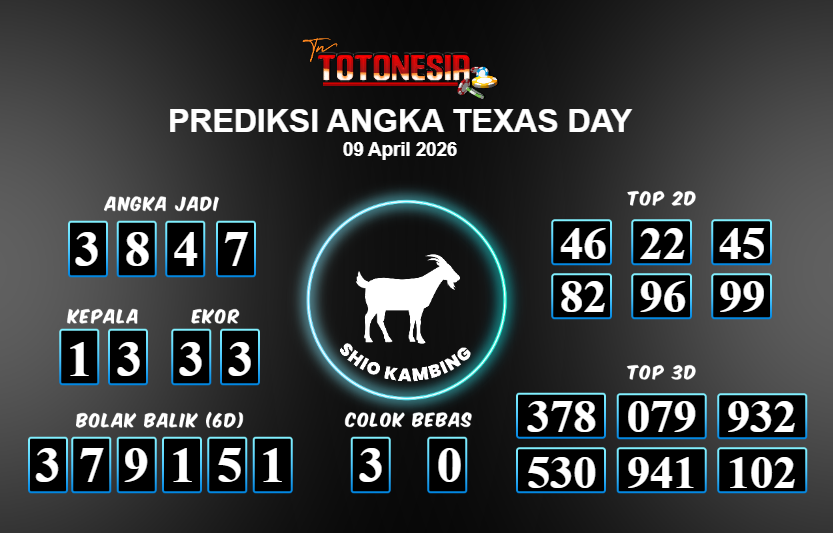 Toto Nesia : Bocoran Prediksi Togel TEXAS DAY Tanggal 09 APRIL 2026