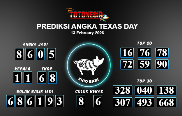 Toto Nesia : Bocoran Prediksi Togel TEXAS DAY Tanggal 13 FEBUARI 2026
