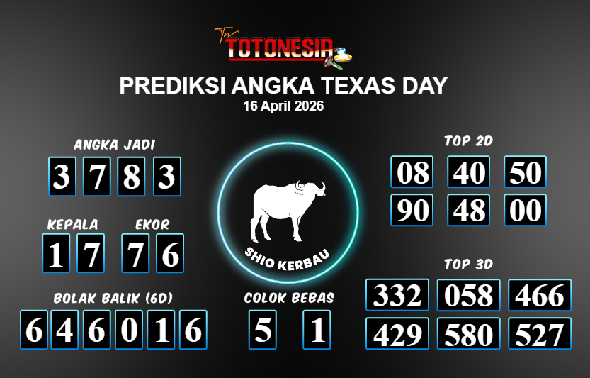Toto Nesia : Bocoran Prediksi Togel TEXAS DAY Tanggal 16 APRIL 2026