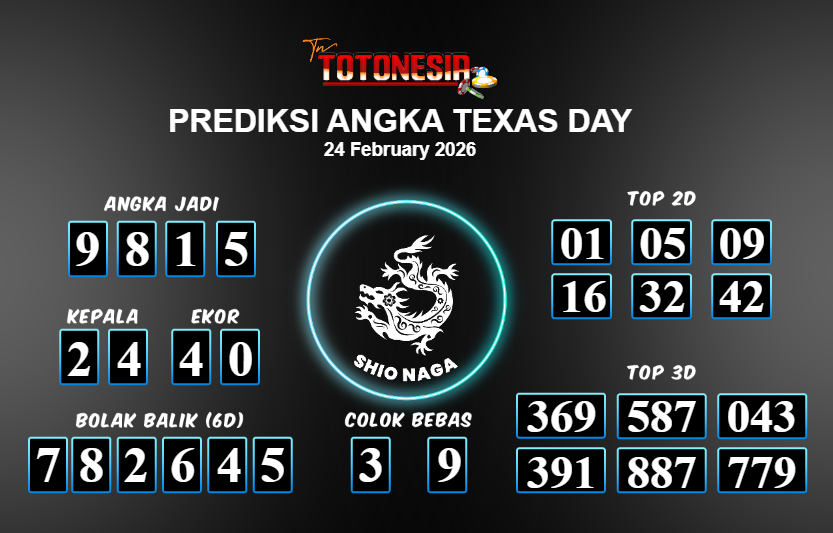 Toto Nesia : Bocoran Prediksi Togel TEXAS DAY Tanggal 24 FEBUARI 2026
