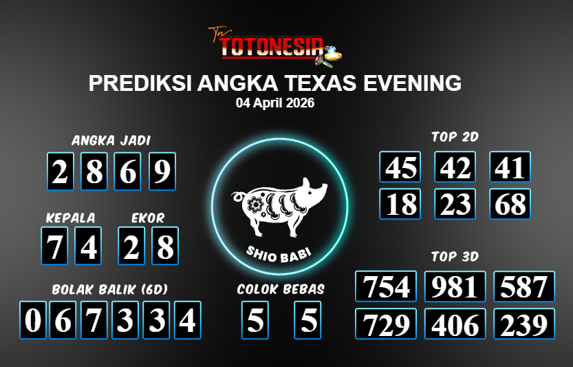 Toto Nesia : Bocoran Prediksi Togel TEXAS EVENING Tanggal 04 APRIL 2026