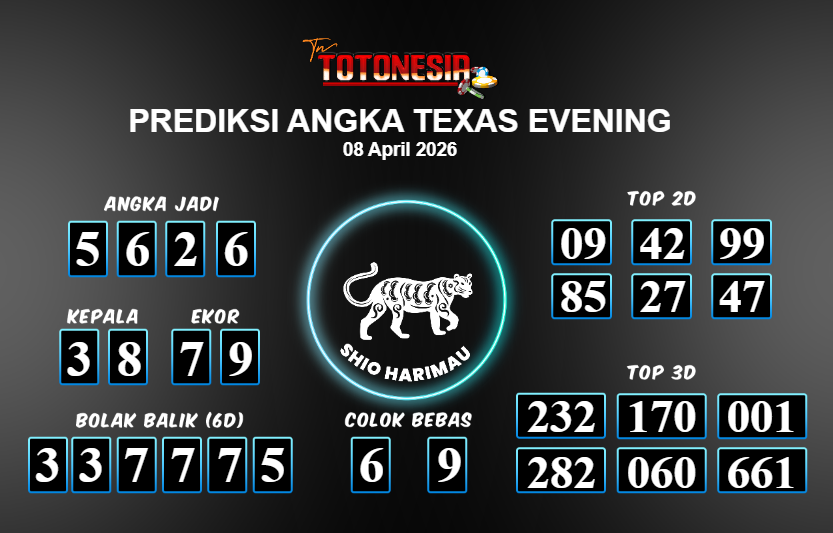 Toto Nesia : Bocoran Prediksi Togel TEXAS EVENING Tanggal 08 APRIL 2026