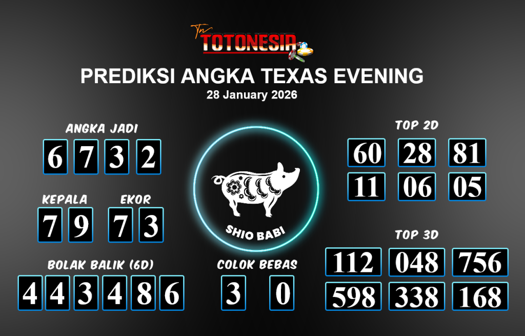 Prediksi TEXAS EVENING adalah perhitungan nomor togel unggulan dari agen suhu togel yang menyajikan angka prediksi paling akurat, sehingga memberikan banyak keuntungan saat bermain di pasar togel TEXAS EVENING. TotoNesia adalah prediksi dengan rasio kemenangan tertinggi di Indonesia. Sebagai penyedia togel yang dapat dipercaya, kami bertekad untuk memberikan ramalan togel yang handal dengan hadiah terbesarnya. Maka dari itu, jangan sampai terlewatkan prediksi bandar togel dengan hadiah terbanyak bet 100 dari pasar togel terbaik TEXAS EVENING daftar sekarang juga di bandar.