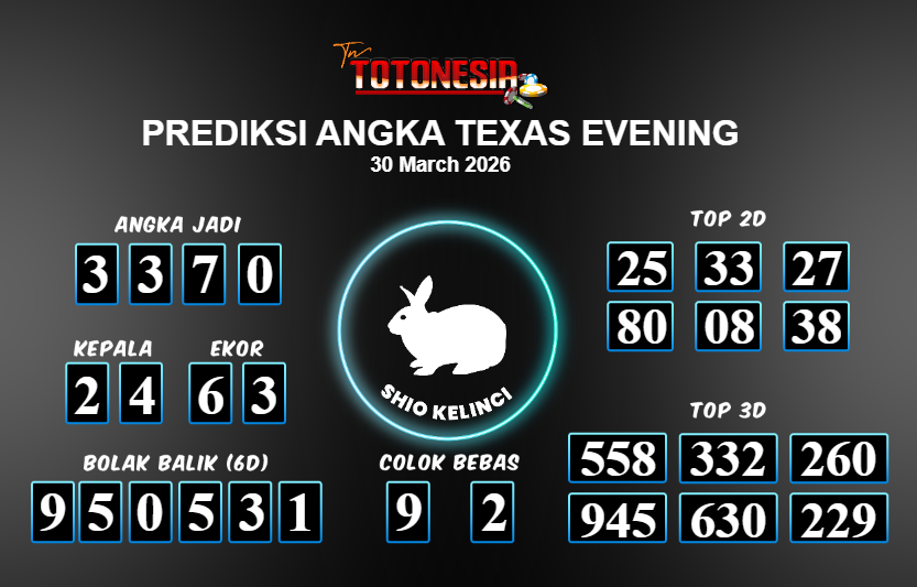 Prediksi TEXAS EVENING adalah perhitungan nomor togel unggulan dari agen suhu togel yang menyajikan angka prediksi paling akurat, sehingga memberikan banyak keuntungan saat bermain di pasar togel TEXAS EVENING . TotoNesia adalah prediksi dengan rasio kemenangan tertinggi di Indonesia. Sebagai penyedia togel yang dapat dipercaya, kami bertekad untuk memberikan ramalan togel yang handal dengan hadiah terbesarnya. Maka dari itu, jangan sampai terlewatkan prediksi bandar togel dengan hadiah terbanyak bet 100 dari pasar togel terbaik TEXAS EVENING Daftar sekarang juga di bandar.