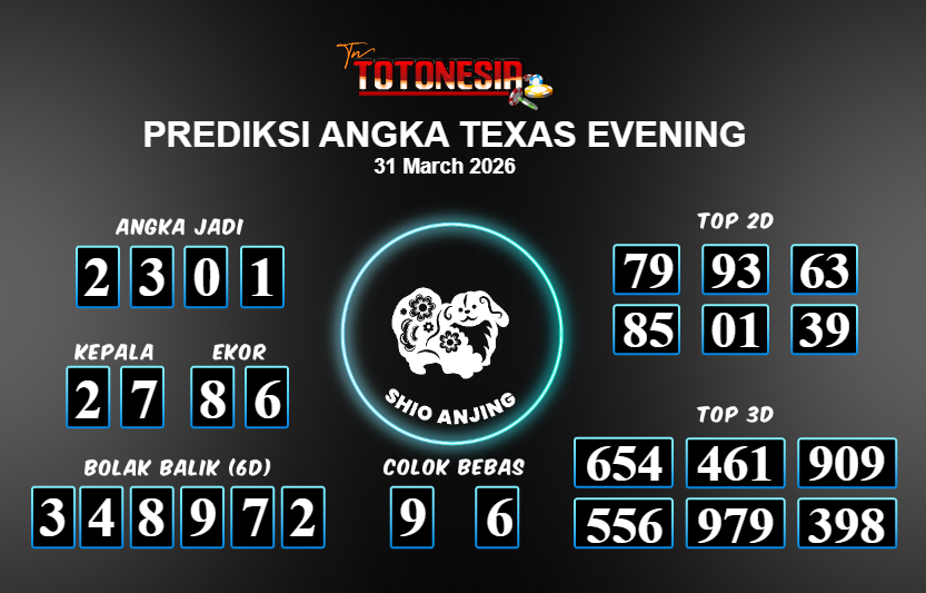 Toto Nesia : Bocoran Prediksi Togel TEXAS EVENING Tanggal 31 MARET 2026