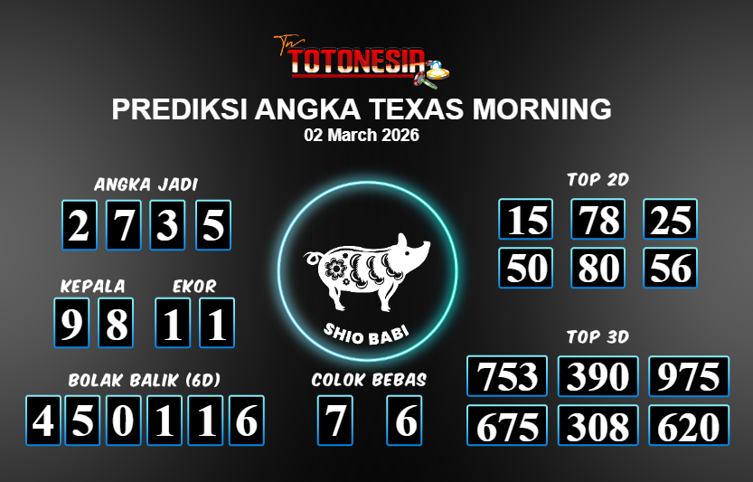 Toto Nesia : Bocoran Prediksi Togel TEXAS MORNING Tanggal 02 MARET 2026