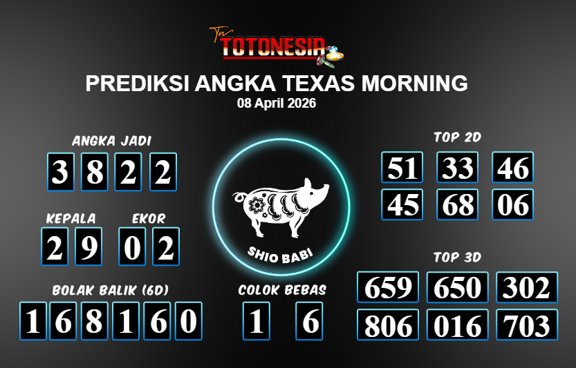 Toto Nesia : Bocoran Prediksi Togel TEXAS MORNING Tanggal 08 APRIL 2026