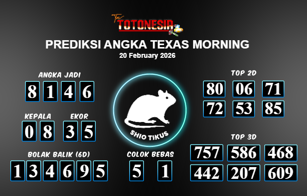 Toto Nesia : Bocoran Prediksi Togel TEXAS MORNING Tanggal 20 FEBUARI 2026