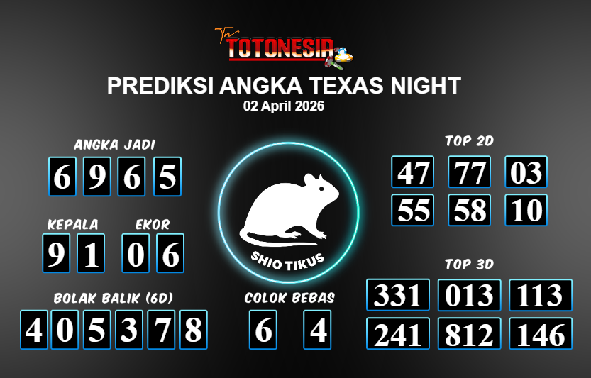 Toto Nesia : Bocoran Prediksi Togel TEXAS NIGHT Tanggal 02 APRIL 2026