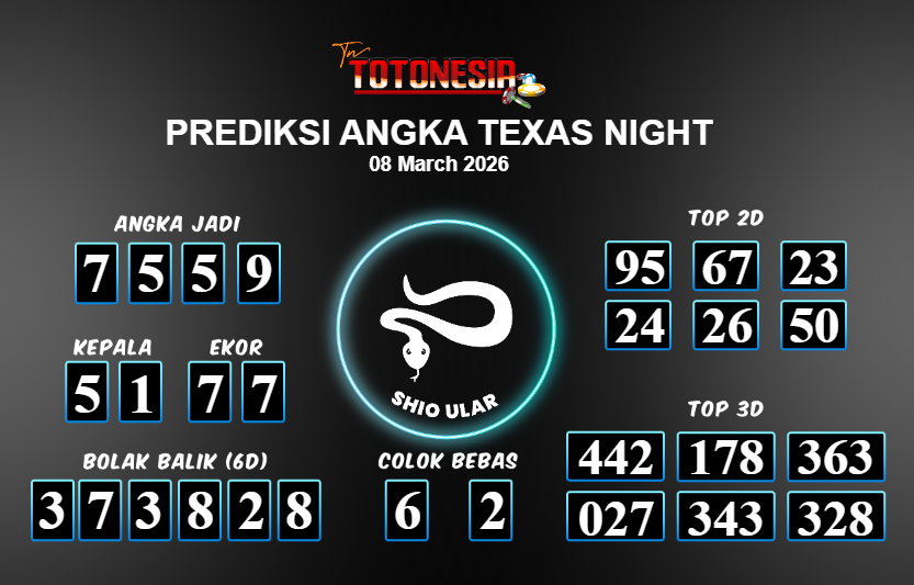 Toto Nesia : Bocoran Prediksi Togel TEXAS NIGHT Tanggal 08 MARET 2026