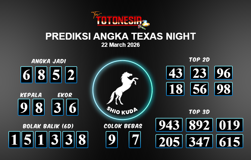 Toto Nesia : Bocoran Prediksi Togel TEXAS NIGHT Tanggal 22 MARET 2026