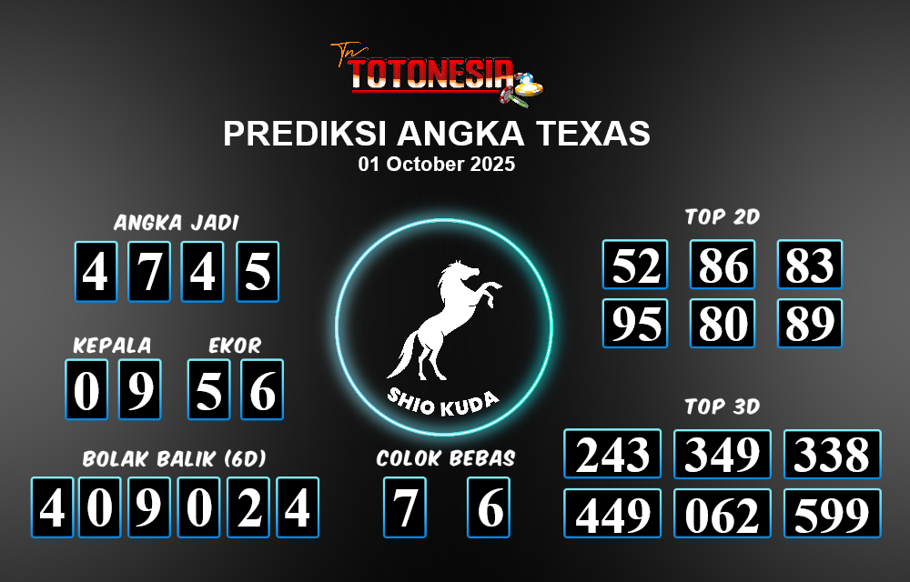 Toto Nesia : Bocoran Prediksi Togel TEXAS Tanggal 01 OKTOBER 2025