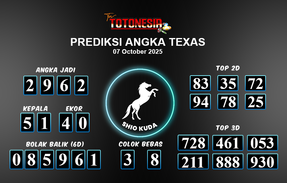 Toto Nesia : Bocoran Prediksi Togel TEXAS Tanggal 07 OKTOBER 2025