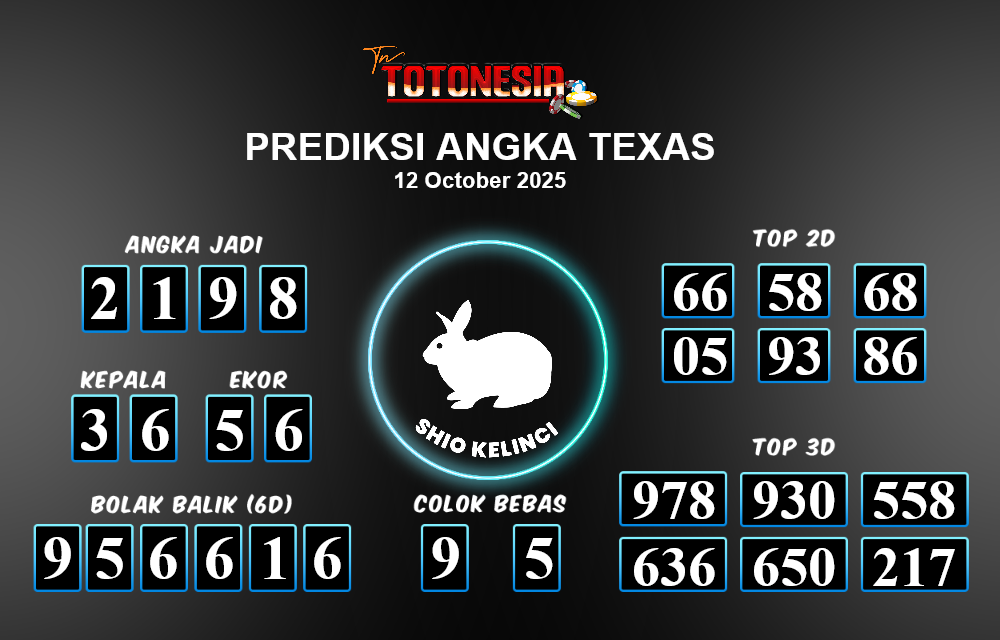 Toto Nesia : Bocoran Prediksi Togel TEXAS Tanggal 12 OKTOBER 2025