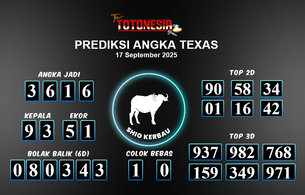 Toto Nesia : Bocoran Prediksi Togel TEXAS Tanggal 17 SEPTEMBER 2025