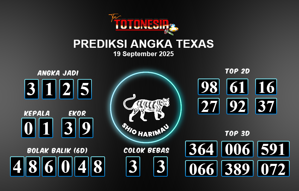 Toto Nesia : Bocoran Prediksi Togel TEXAS Tanggal 19 SEPTEMBER 2025