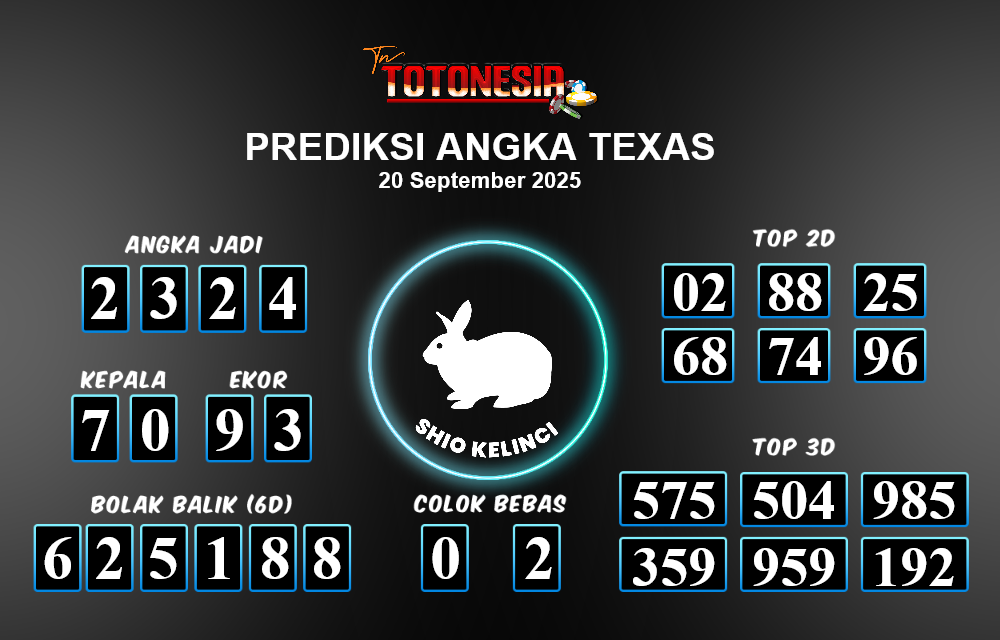 Toto Nesia : Bocoran Prediksi Togel TEXAS Tanggal 20 SEPTEMBER 2025