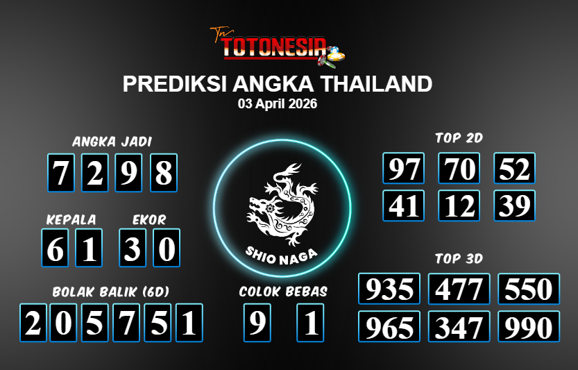Toto Nesia : Bocoran Prediksi Togel THAILAND Tanggal 03 APRIL 2026
