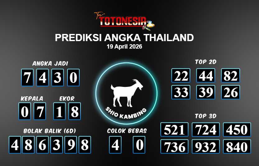 Toto Nesia : Bocoran Prediksi Togel THAILAND Tanggal 19 APRIL 2026