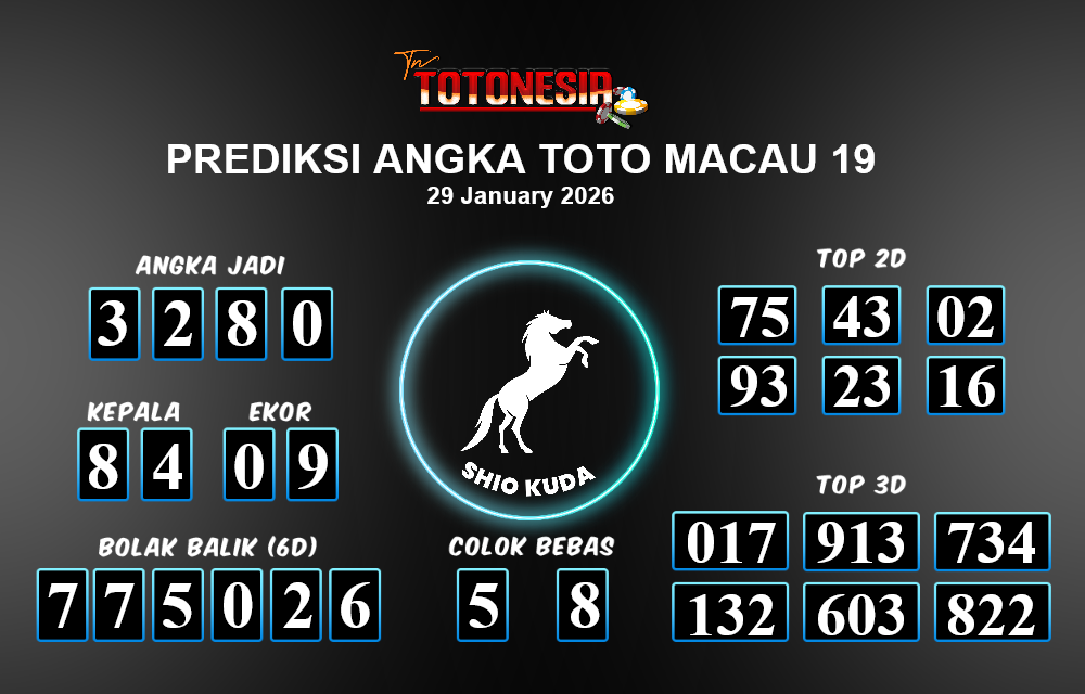Prediksi TOTO MACAU 19 adalah perhitungan nomor togel unggulan dari agen suhu togel yang menyajikan angka prediksi paling akurat, sehingga memberikan banyak keuntungan saat bermain di pasar togel TOTO MACAU 19. TotoNesia adalah prediksi dengan rasio kemenangan tertinggi di Indonesia. Sebagai penyedia togel yang dapat dipercaya, kami bertekad untuk memberikan ramalan togel yang handal dengan hadiah terbesarnya. Maka dari itu, jangan sampai terlewatkan prediksi bandar togel dengan hadiah terbanyak bet 100 dari pasar togel terbaik TOTO MACAU19 daftar sekarang juga di bandar.