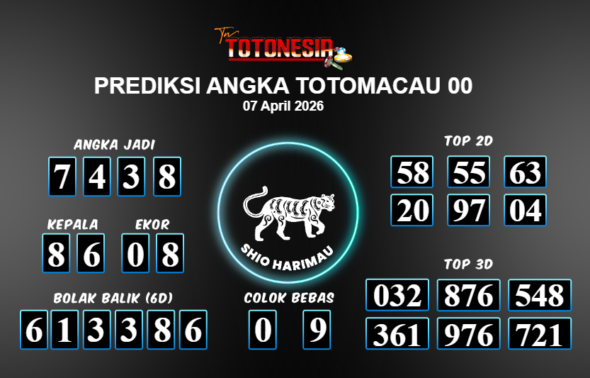 Toto Nesia : Bocoran Prediksi Togel TOTOMACAU 00 Tanggal 07 APRIL 2026