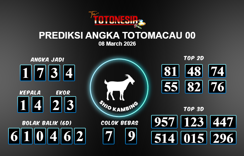 Toto Nesia : Bocoran Prediksi Togel TOTOMACAU 00 Tanggal 08 MARET 2026