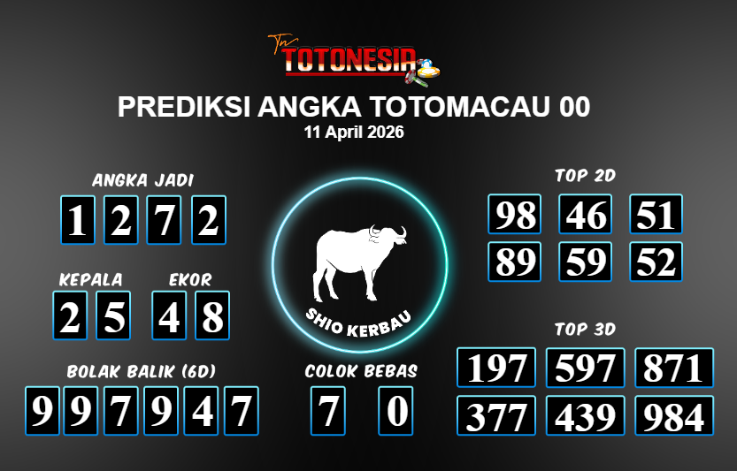 Toto Nesia : Bocoran Prediksi Togel TOTOMACAU 00 Tanggal 11 APRIL 2026