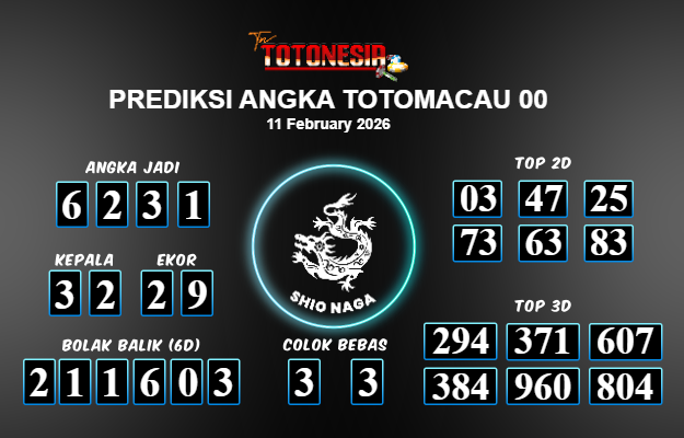 Toto Nesia : Bocoran Prediksi Togel TOTOMACAU 00 Tanggal 11 FEBUARI 2026