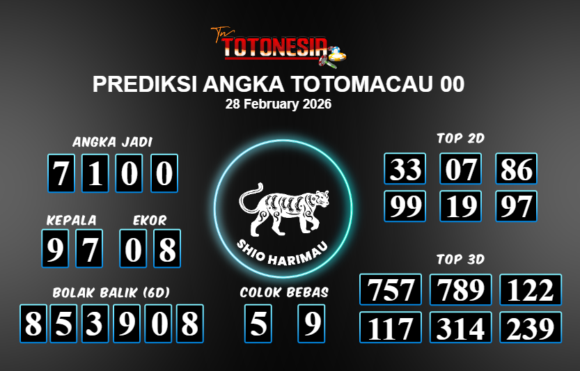 Toto Nesia : Bocoran Prediksi Togel TOTOMACAU 00 Tanggal 28 FEBUARI 2026