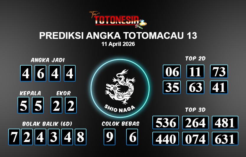 Toto Nesia : Bocoran Prediksi Togel TOTOMACAU 13 Tanggal 11 APRIL 2026