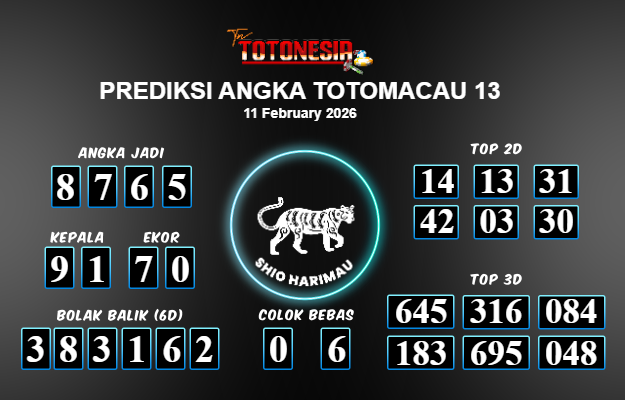 Toto Nesia : Bocoran Prediksi Togel TOTOMACAU 13 Tanggal 11 FEBUARI 2026