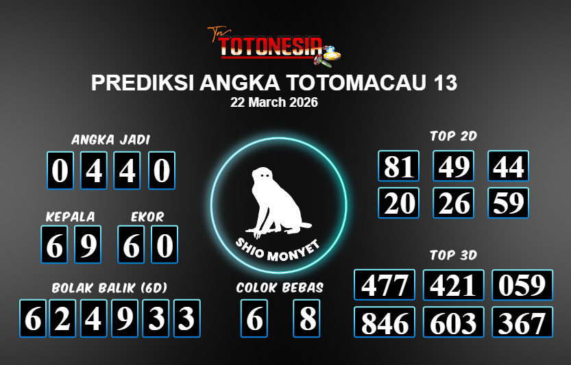 Toto Nesia : Bocoran Prediksi Togel TOTOMACAU 13 Tanggal 22 MARET 2026
