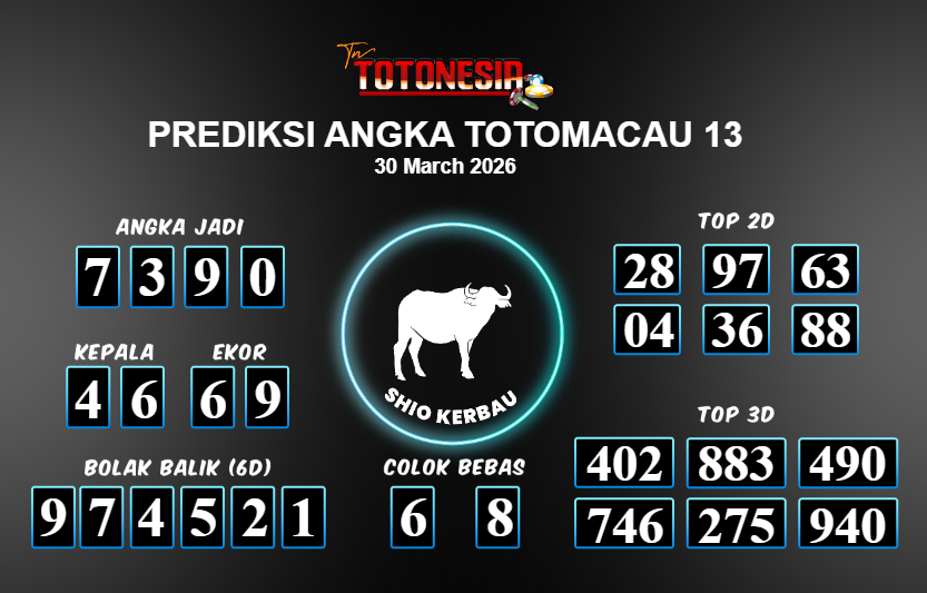 Toto Nesia : Bocoran Prediksi Togel TOTOMACAU 13 Tanggal 30 MARET 2026